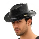Η κροκοδειλέ υφή σε μαύρη απόχρωση χαρίζει κομψότητα και western αισθητική, κάνοντας το καπέλο να ξεχωρίζει σε κάθε εμφάνιση.