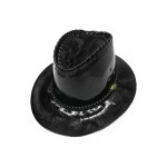 Δώστε δυναμικό χαρακτήρα στην αποκριάτικη εμφάνισή σας με αυτό το μαύρο κροκοδειλέ Cowboy Hat. Ιδανικό για αποκριάτικες στολές, θεματικά πάρτι και καρναβάλια, προσφέροντας εντυπωσιακό και ιδιαίτερο στυλ.