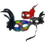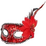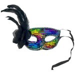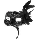 Η Venetian Tinsel Mask με λουλούδι και φτερά συνδυάζει κομψότητα και εντυπωσιακό στυλ, ιδανική για masquerade πάρτι και αποκριάτικες εμφανίσεις. Τα φτερά και το λουλούδι προσθέτουν μια δραματική και πολυτελή πινελιά στην εμφάνιση.