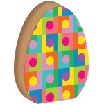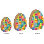 Κατασκευασμένο από ξύλο MDF με λεπτομερή ζωγραφισμένες πολύχρωμες τελείες, ανθεκτικό και κομψό, ιδανικό για εσωτερική διακόσμηση και πασχαλινά δώρα.