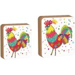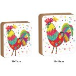 Κατασκευασμένο από ξύλο MDF με λεπτομερή ζωγραφισμένη πολύχρωμη κότα, ανθεκτικό και κομψό, ιδανικό για εσωτερική διακόσμηση.