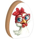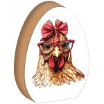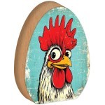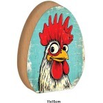 Κατασκευασμένο από ξύλο MDF με λεπτομερή ζωγραφισμένη κότα, ανθεκτικό και κομψό, ιδανικό για εσωτερική διακόσμηση και πασχαλινά δώρα.