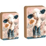 Κατασκευασμένο από ξύλο MDF με λεπτομερή ζωγραφισμένο πρόβατο, ανθεκτικό και κομψό, ιδανικό για εσωτερική διακόσμηση και πασχαλινά δώρα.