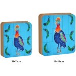 Κατασκευασμένο από ξύλο MDF με λεπτομερή ζωγραφισμένη γαλάζια κότα, ανθεκτικό και κομψό, ιδανικό για εσωτερική διακόσμηση.