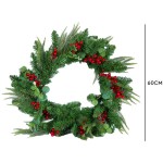 Το στεφάνι έχει διάμετρο 60cm και είναι κατασκευασμένο από ανθεκτικά συνθετικά υλικά υψηλής ποιότητας που εξασφαλίζουν ρεαλιστική υφή και μακροχρόνια αντοχή. Τα πράσινα φύλλα και τα κόκκινα berries παραμένουν ζωηρά με την πάροδο του χρόνου, κάνοντάς το μια κομψή και διαχρονική επιλογή για τις γιορτές.