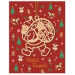 Xmas Hollywood Κάρτα Mε Ξύλινο Κρεμαστό Στολίδι Αη Βασίλης Δώρα