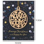 Η κάρτα είναι φτιαγμένη στο χέρι με ξύλινα διακοσμητικά στοιχεία, προσφέροντας μοναδικό χαρακτήρα και προσοχή στη λεπτομέρεια. Η επεξεργασία ολοκληρώνεται με θερμοτυπία, γκλίτερ και στρασάκια, δημιουργώντας μια πολυτελή και λαμπερή εμφάνιση κατάλληλη για τη γιορτινή ατμόσφαιρα των Χριστουγέννων.