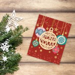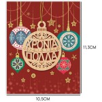 Η κάρτα είναι φτιαγμένη στο χέρι με ξύλινα διακοσμητικά στοιχεία, προσφέροντας μοναδικό χαρακτήρα και προσοχή στη λεπτομέρεια. Η επεξεργασία ολοκληρώνεται με θερμοτυπία, γκλίτερ και στρασάκια, δημιουργώντας μια πολυτελή και λαμπερή εμφάνιση κατάλληλη για τη γιορτινή ατμόσφαιρα των Χριστουγέννων.