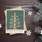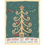 Η κάρτα είναι φτιαγμένη στο χέρι με ξύλινα διακοσμητικά στοιχεία, προσφέροντας μοναδικό χαρακτήρα και προσοχή στη λεπτομέρεια. Η επεξεργασία ολοκληρώνεται με θερμοτυπία, γκλίτερ και στρασάκια, δημιουργώντας μια πολυτελή και λαμπερή εμφάνιση κατάλληλη για τη γιορτινή ατμόσφαιρα των Χριστουγέννων.