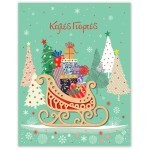 Η κάρτα είναι φτιαγμένη στο χέρι με ξύλινα διακοσμητικά στοιχεία, προσφέροντας μοναδικό χαρακτήρα και προσοχή στη λεπτομέρεια. Η επεξεργασία ολοκληρώνεται με θερμοτυπία, γκλίτερ και στρασάκια, δημιουργώντας μια πολυτελή και λαμπερή εμφάνιση κατάλληλη για τη γιορτινή ατμόσφαιρα των Χριστουγέννων.