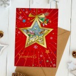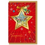 Κατασκευασμένη από ποιοτικό χαρτόνι με λαμπερά και διακοσμητικά στοιχεία, η κάρτα είναι ανθεκτική και όμορφη. Η επιφάνεια είναι ιδανική για να γράψεις τα δικά σου, θερμά μηνύματα ευχών.
