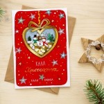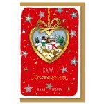 Κατασκευασμένη από ποιοτικό χαρτόνι με λαμπερά και διακοσμητικά στοιχεία, η κάρτα είναι ανθεκτική και όμορφη. Η επιφάνεια είναι ιδανική για να γράψεις τα δικά σου, θερμά μηνύματα ευχών.