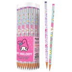 Το μολύβι είναι φτιαγμένο από ανθεκτικό ξύλο καλής ποιότητας, που ξύνεται εύκολα χωρίς να σπάει η μύτη. Η μύτη είναι τύπου HB, ιδανική για γενική χρήση, προσφέροντας ισορροπία ανάμεσα στη σκουρότητα και την αντοχή. Η ενσωματωμένη γόμα είναι μαλακή και δεν φθείρει το χαρτί. Η επιφάνεια του μολυβιού διαθέτει ανθεκτική εκτύπωση My Melody, με φωτεινά χρώματα που δεν ξεθωριάζουν εύκολα με τη χρήση.