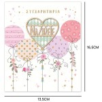 Η κάρτα είναι φτιαγμένη στο χέρι με ξύλινα διακοσμητικά στοιχεία, προσφέροντας μοναδικό χαρακτήρα και προσοχή στη λεπτομέρεια. Η επεξεργασία ολοκληρώνεται με θερμοτυπία, γκλίτερ και στρασάκια, δημιουργώντας μια πολυτελή και λαμπερή εμφάνιση. Κατασκευάζεται από ποιοτικό χαρτί υψηλής αντοχής.