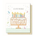 Η κάρτα είναι φτιαγμένη στο χέρι με ξύλινα διακοσμητικά στοιχεία που την κάνουν να ξεχωρίζει. Η επεξεργασία ολοκληρώνεται με θερμοτυπία, γκλίτερ και στρασάκια, δημιουργώντας μια λαμπερή και γιορτινή εμφάνιση που αποτυπώνει τη χαρά και το πνεύμα των γενεθλίων.