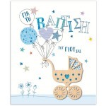 Hollywood Κάρτα Βάπτισης Αγόρι Καρότσι Με Μπλε Θερμοτυπία