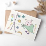 Κατασκευασμένη από ποιοτικό χαρτόνι με στιβαρή υφή, η κάρτα είναι ανθεκτική και εύκολη στη χρήση. Η επιφάνεια της είναι ιδανική για γραφή προσωπικού μηνύματος, ενώ το φωτεινό και παιχνιδιάρικο σχέδιο ξεχωρίζει.