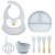 Το σετ περιλαμβάνει 8 τεμάχια και είναι κατασκευασμένο από ποιοτική σιλικόνη, προσφέροντας ανθεκτικότητα και εύκολη χρήση για μικρά παιδιά. Το υλικό καθαρίζεται εύκολα και είναι ιδανικό για καθημερινή χρήση.
