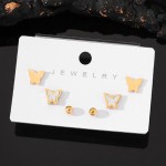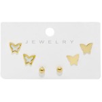 Προσθέστε παιχνιδιάρικη κομψότητα στις μικρές εμφανίσεις με αυτό το σετ τριών ζευγαριών παιδικών σκουλαρικιών σε χρυσό χρώμα. Το σετ περιλαμβάνει πεταλούδα, λευκή πεταλούδα από όστρακο και στρογγυλή χάντρα, δημιουργώντας μια ποικιλία χαριτωμένων και λαμπερών επιλογών για κάθε μικρή fashionista.