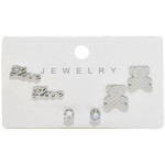 Λάμψη και γλυκύτητα σε ένα μοναδικό σετ τριών ζευγαριών παιδικά σκουλαρίκια σε ατσάλινο χρώμα! Το σετ περιλαμβάνει χαριτωμένα σχέδια με αρκουδάκι, LOVE με διαμαντάκια και ένα σετ με ζιρκόν, ιδανικά για μικρές κυρίες που αγαπούν να ξεχωρίζουν με στυλ και λάμψη.