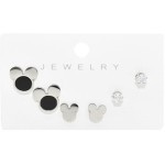Κομψότητα και παιχνιδιάρικη διάθεση σε ένα σετ! Αυτό το σετ τριών ζευγαριών παιδικών σκουλαρικιών σε ατσάλινο χρώμα περιλαμβάνει Mickey με μαύρα λεπτά στρας, στρογγυλό λευκό στρας και γυαλιστερό Mickey, δημιουργώντας έναν υπέροχο συνδυασμό λάμψης και διασκέδασης για κάθε περίσταση.