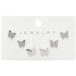 Τα Shiny Παιδικά Σκουλαρίκια Πεταλούδες Με Ανάγλυφη Και Γυαλιστερή Υφή 3 Σετάκια Ασημί είναι κομψά και παιχνιδιάρικα αξεσουάρ για μικρές fashionistas. Το σχέδιο πεταλούδας με ανάγλυφη και γυαλιστερή υφή προσφέρει μοναδική λάμψη και κομψότητα σε κάθε εμφάνιση.