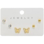 Μικρές λεπτομέρειες που κλέβουν τις εντυπώσεις! Αυτό το σετ τριών παιδικών ζευγαριών σκουλαρικιών σε χρυσό χρώμα περιλαμβάνει στρας, μια διάτρητη πεταλούδα και στρογγυλή χάντρα, προσφέροντας ποικιλία και παιχνιδιάρικο στυλ για κάθε μικρή fashionista.