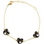 Κατασκευασμένο από ανθεκτικό μέταλλο με φινίρισμα σε χρυσό χρώμα, το βραχιόλι διατηρεί τη λάμψη του και προσφέρει αντοχή και διαχρονική ποιότητα. Οι γυαλιστερές μαύρες καρδιές με κοψίματα Mickey έχουν τοποθετηθεί προσεκτικά για ασφάλεια και εντυπωσιακό αποτέλεσμα.